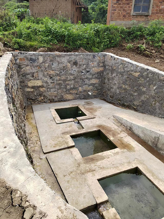 這兩口老水井均修建于上世紀六十年代,由于年久失修,泥沙充填,井邊雜草叢生,漸變荒井。今年8月,為助推鄉村振興,履行企業的社會責任,萬鵬建材相關人員對現場進行了查看,和村支兩委負責人共同討論研究,決定對老舊水井實施翻新改造修復,把水井按照挑水池、洗菜池、洗衣池等不同類別分類,并對翻新井口加以美化,使老水井煥然一新,既改善了新農村面貌,又大大方便了周邊村民的生產生活用水。