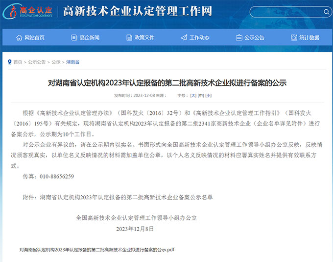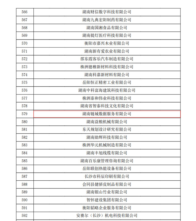 2023年12月,湖南省認定機構2023年認定報備的第二批高新技術企業備案名單公示,湖南鏈城數據服務有限公司赫然在列,公司申報國家級高新技術企業獲批通過。
